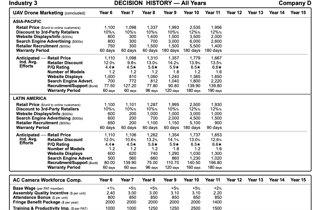 Solved Decision History All Years Company D Year 13 Year Chegg Com