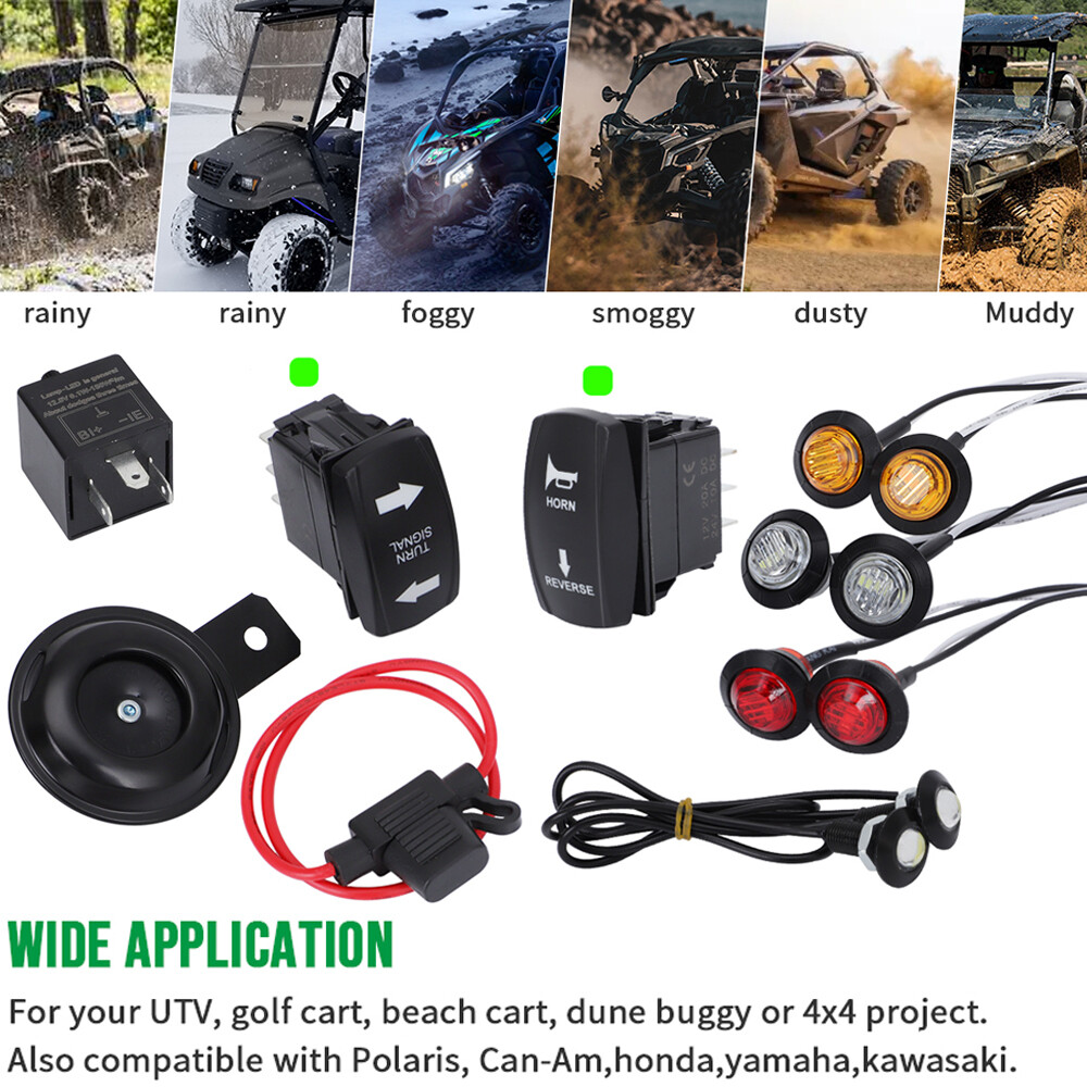 Universal Utv Atv Golf Cart Sxs Turn Signal Horn Street Legal Kit Led Light Set Ebay