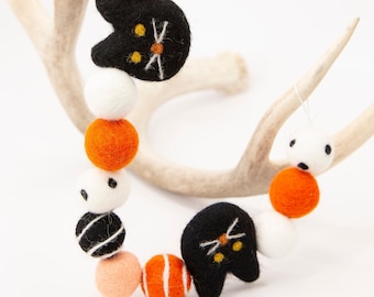 Cat Halloween Garland Halloween Decor Felt Cat Halloween Etsy